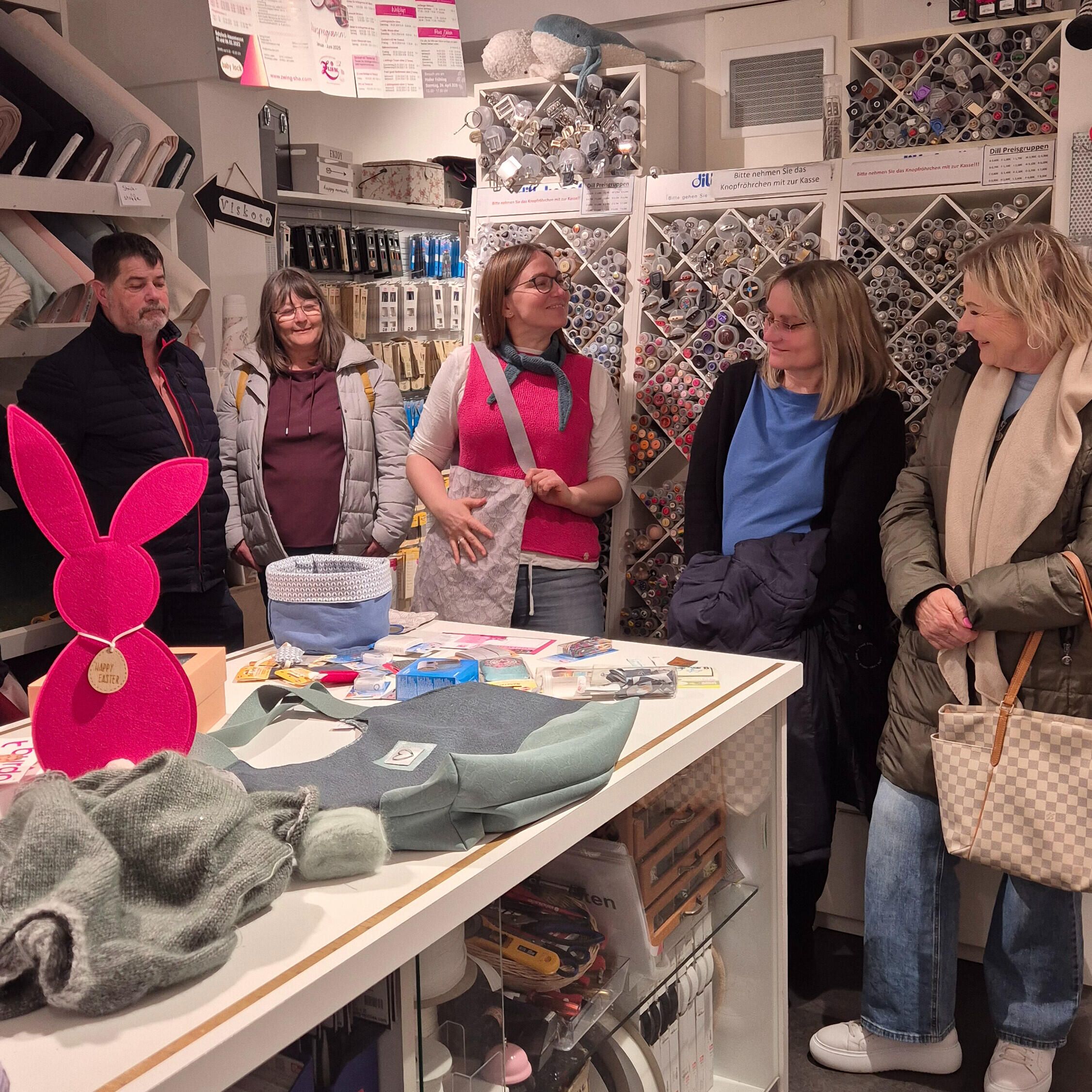 Auch in diesem Jahr war die Tour innerhalb kürzester Zeit ausgebucht, was für das Format spricht. Nach der Begrüßung durch Bürgermeister Marcel Miara ging es los und die rund 80 Teilnehmenden haben in Kleingruppen die teilnehmenden Geschäfte besucht. Beim Weltladen wurde der Globus mit verschiedenen Projekten verarztet, Frau Stein vom Zwing hat über die zahlreichen Kursangebote berichtet und beim vom Fass gab es einen leckeren Tropical Dip mit Crackern zum probieren. Herr Barthel hat einen Einblick in das Samocca Konzept gegeben und Josephine Dürr hat den Tilda Store vorgestellt. Der Abschluss fand dieses Jahr im Hotel Hohenlohe statt.