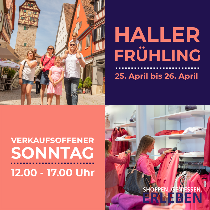 Der Haller Frühling in Schwäbisch Hall ist weit über die Stadtgrenzen hinaus bekannt. Egal ob bummeln, einen Kaffee trinken oder Zeit mit den Liebsten verbringen - es wird für jeden etwas geboten. Die Geschäfte öffnen am verkaufsoffenen Sonntag von 12.00 bis 17.00 Uhr. In diesem Jahr fällt dieser Sonntag auf den Muttertag, was ein echter Glücksfall ist: Denn so kann die ganze Familie einen schönen Tag in Schwäbisch Hall verbringen und die vielen Angebote und Aktionen nutzen.