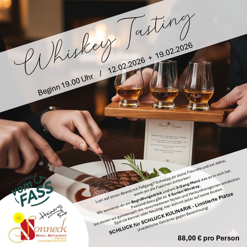 Tolles Whisky Tasting mit 3 Gänge Menü und 6 Whiskys